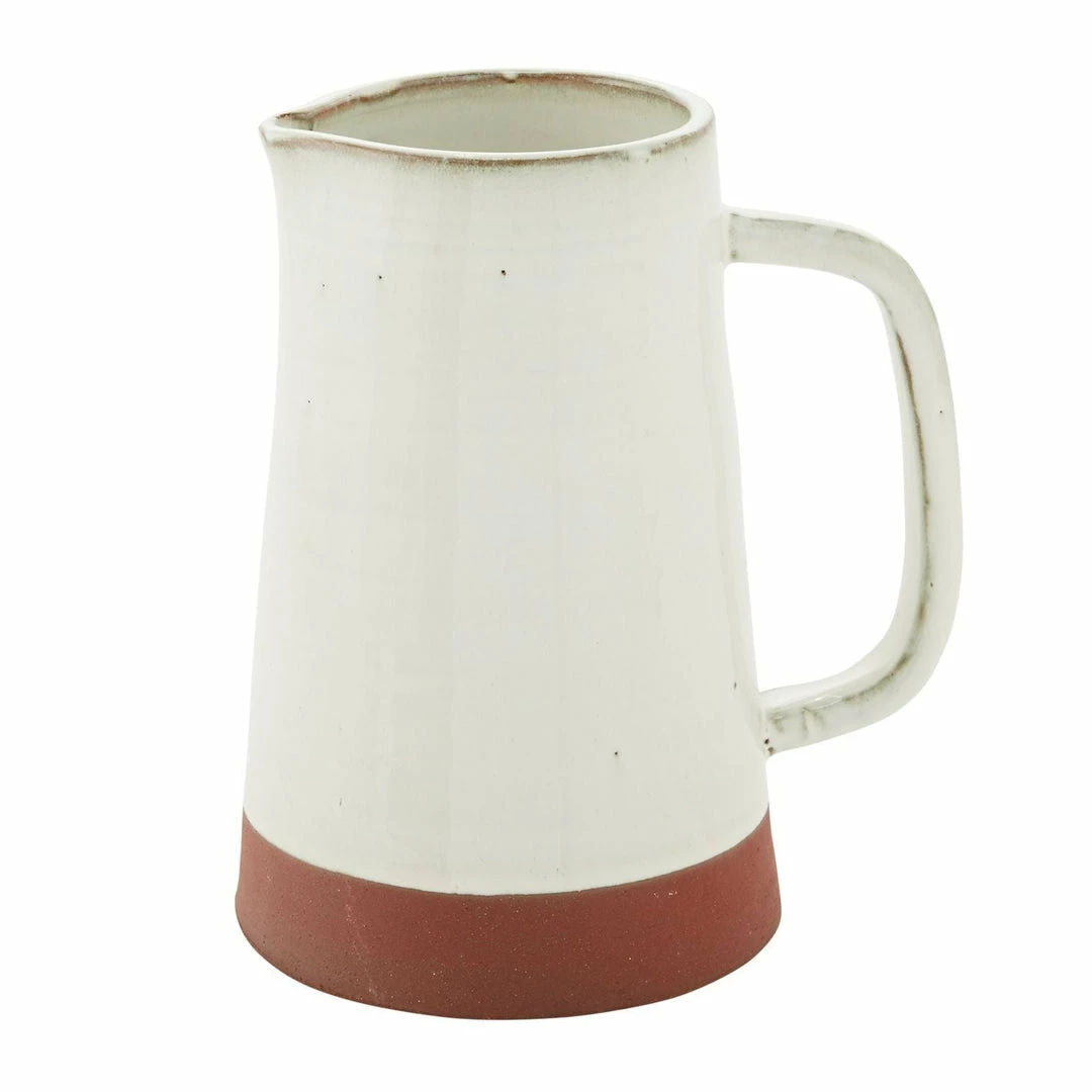 Handmade from red clay, with a white glazed finish, the Kana Pitcher is food safe and a stylish addition to our kitchen collection.