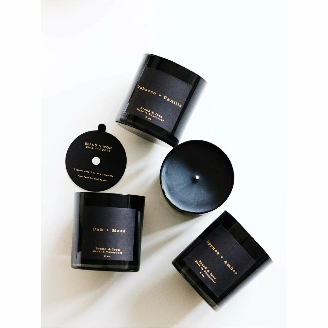 Spruce & Amber: A forest inspired scent with a blend of rich spruce and musky amber. Citrus notes add brightness while sage and clove meet in the middle to create warmth.