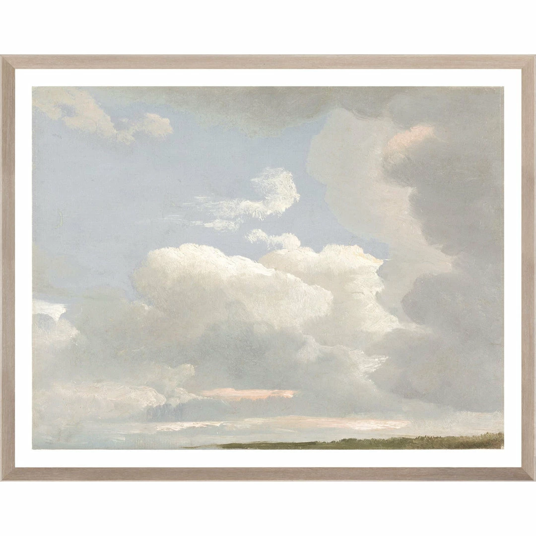 This beautiful early evening cloud filled sky as seen through the eyes of Belgian artist Simon Denis. The attention to detail in the billows using tones of gray, pink, blue and white create this stunning sky landscape.
