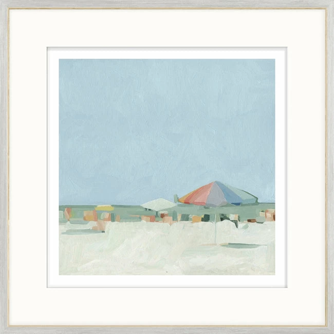 Emma Scarvey has captured this day at the beach perfectly with blush and blue sugary pastel colours. It is juicy and the colours are subtly nuanced. Framed with a simple white washed molding with gold inner lip.