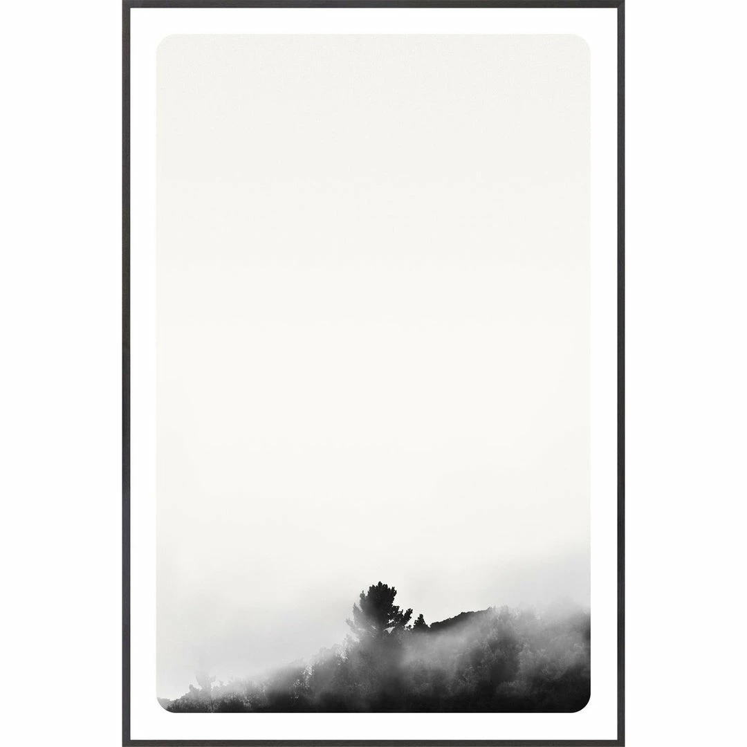 Calm and quiet, this series of fog immersed black and white landscape photos offer the calm of the wilderness. The minimal composition is enhanced by a charcoal deep frame. A series of six minimal black and white photos.