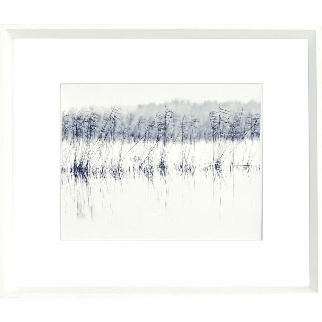 A subtle and evocative photograph in indigo tones that will slow your pulse and inspire deep sighs. This image makes a strong contemporary statement in a large grouping or as smaller accents. Framed with double thick, raised matte and a clean white, angled frame. Pairs well with Indigo Eloquence I.