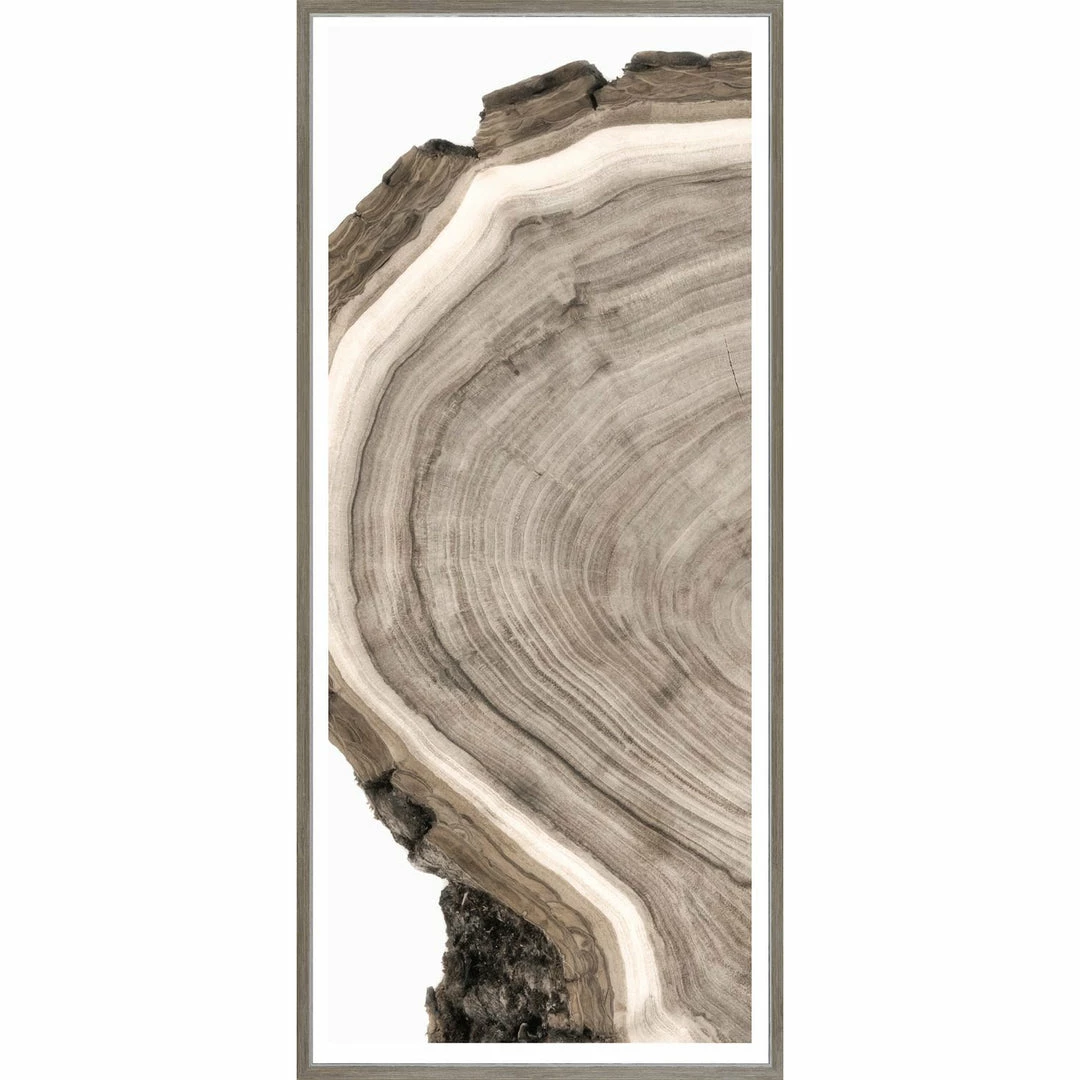 Beautiful Sepia toned live-edge detail brings natural beauty into your home. Hung individually, or in a group, this natural artwork brings the outdoors, in.