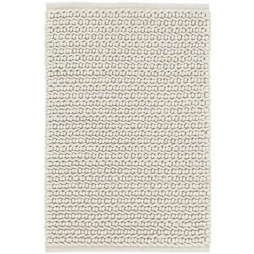 This indoor/outdoor rug has the look and texture of jute but is actually scrubbable, hoseable, easy-to-care-for P.E.T.