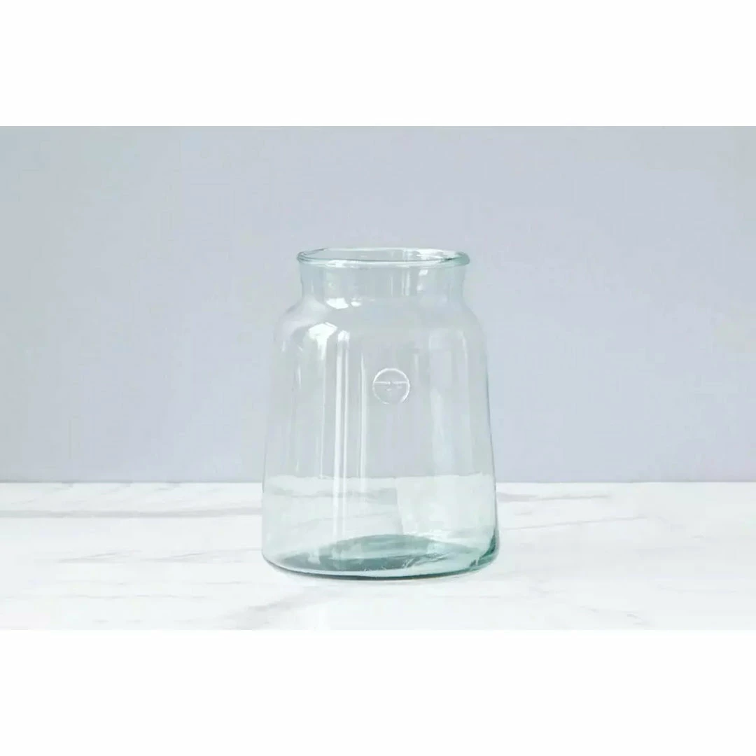 In villages throughout Europe, these wide mouth glass jars were used for the summer harvest. Our mason jars are made from recycled glass blown into authentic casts to retain their characteristic appeal. The beauty of the French Mason Jars is their organic and imperfect shape from the mouth blown process of their creation. The sloping sides of the recycled glass with the addition of a vintage-inspired French bee seal make for an elegant and timeless accent piece. The mason jars true beauty shines when embraced as a clear glass vase with a bouquet of fresh flowers.