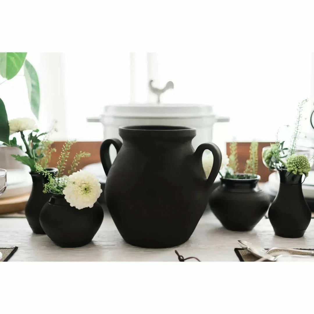 Made from terracotta clay, the Limited Edition Black Pottery Collection is thrown by a single European artisan on an original potter’s wheel. Each item is a unique piece of art and will vary due to the handcrafted technique used to create them.