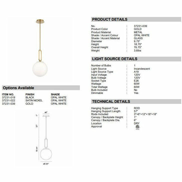- Dimensions: 9.75″ Diameter x 18.75 Height