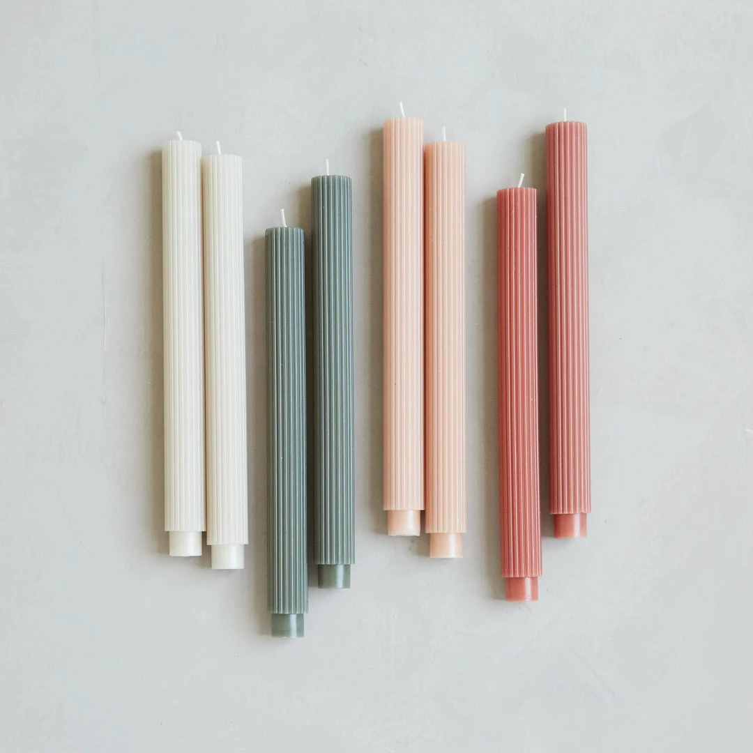 Floral Society Candles + Candleholders Fancy Taper Candle 10″ | Moss