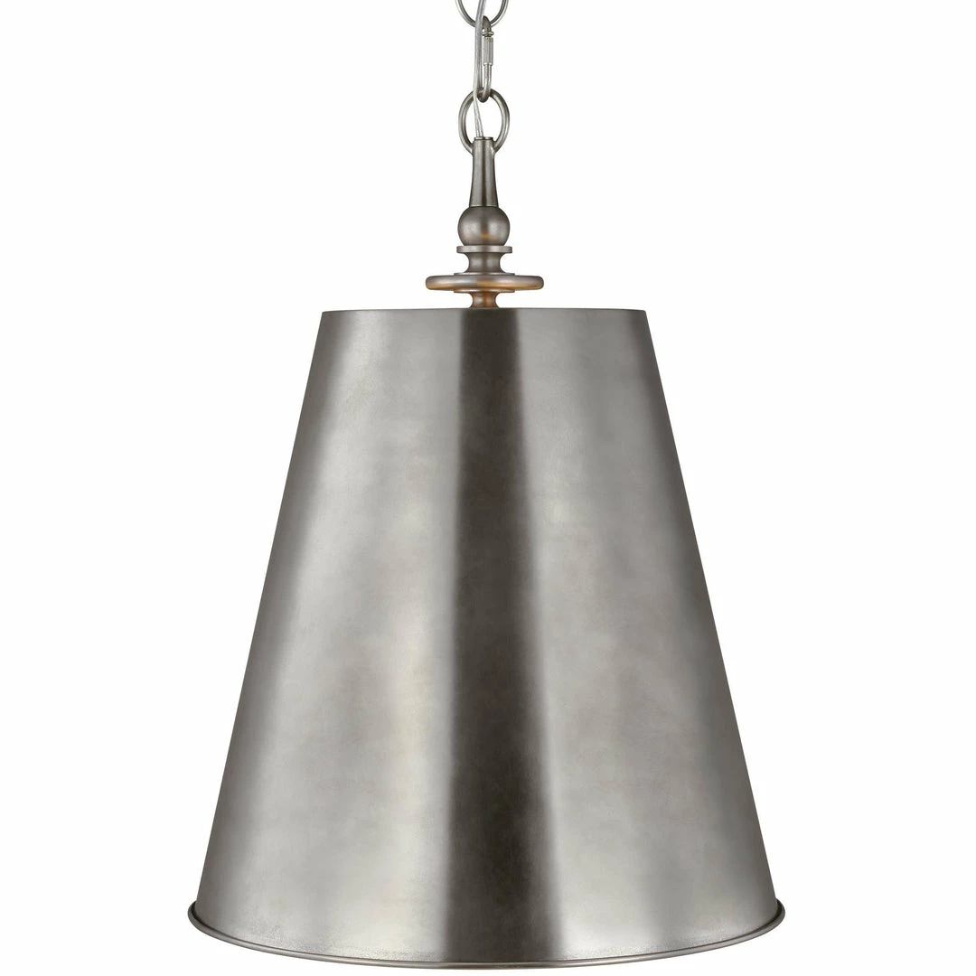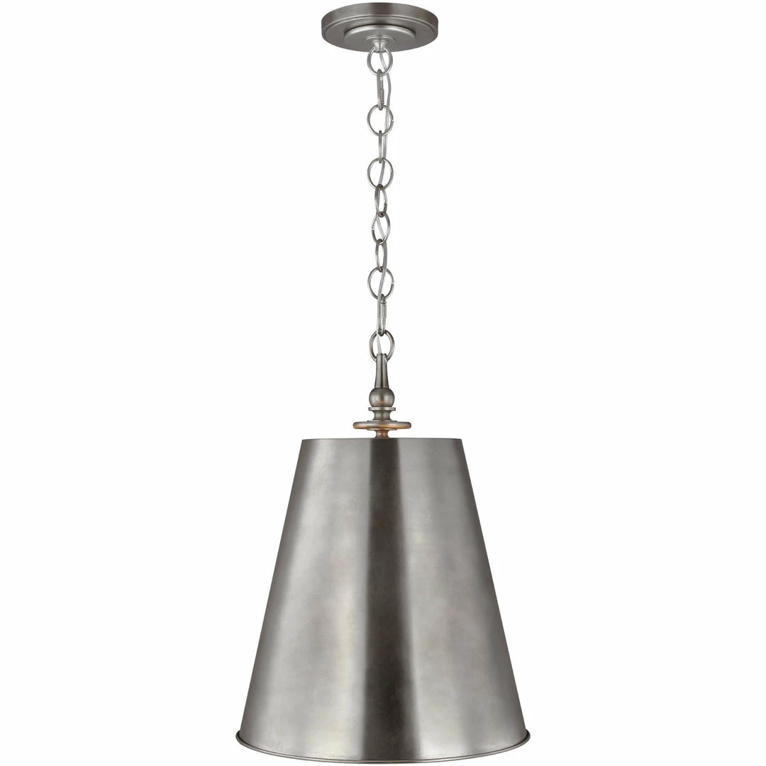 This product family is comprised of classic chandeliers, wall sconces, globe pendants, buffet lamp, floor lamp and tapered pendants. The Tall Pendant includes 15′ of wire and 5′ of chain. Available in four finish options: Aged Iron and Polished Nickel, Burnished Brass/White, and Antique Nickel.