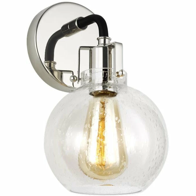 The Clara Collection features Clear Seeded glass shades that subtly diffuse the lamping while allowing the exposed bulb to be a central design element of the fixture.Â