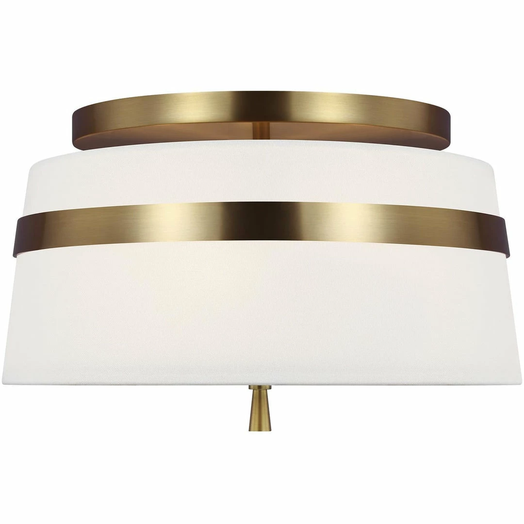 The Cordtlandt Semi Flush Ceiling Light offers a tailored look that is modern and sophisticated. Features a White Linen shade, White bottom diffuser and Aged Iron, Polished Nickel or Burnished Brass finish with matching finial. Choose from two sizes. ETL listed. Suitable for damp locations.