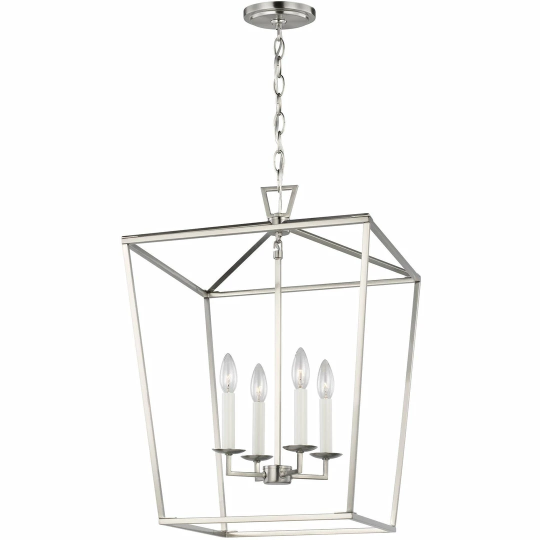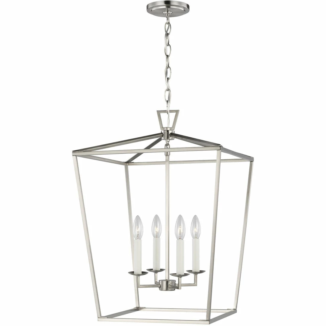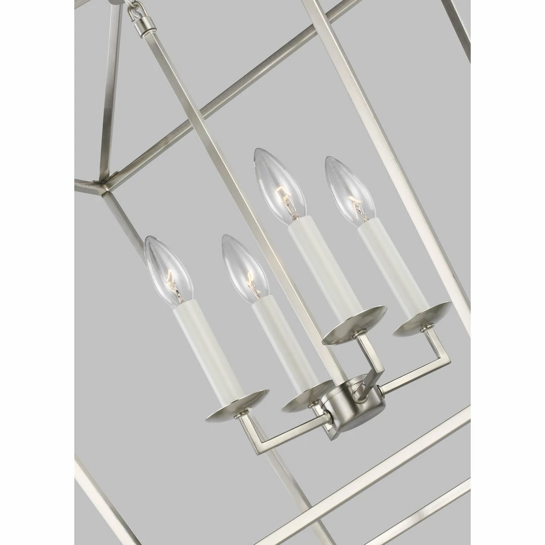 Dianna Pendant is an airy, iron frame, three dimensional lantern. Comes with wire pre-laced through chain. Available in three finish options: Brushed Nickel, Midnight Black and Satin Brass. Assortment includes: 3-light mini lantern, 4-light small lantern, 5-light wide lantern and 5-light wide linear chandelier.