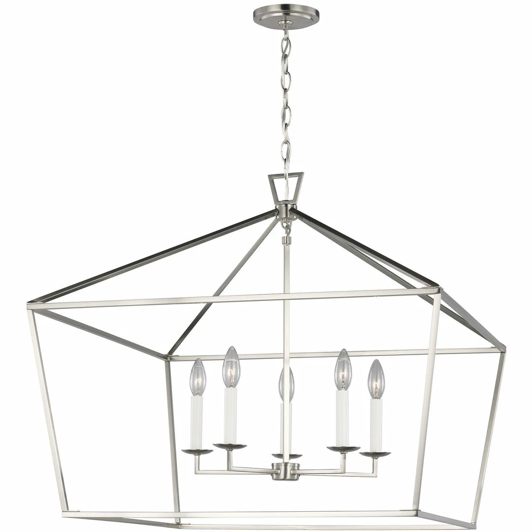 Dianna Pendant is an airy, iron frame, three dimensional lantern. Comes with wire pre-laced through chain. Available in three finish options: Brushed Nickel, Midnight Black and Satin Brass. Assortment includes: 3-light mini lantern, 4-light small lantern, 5-light wide lantern and 5-light wide linear chandelier.