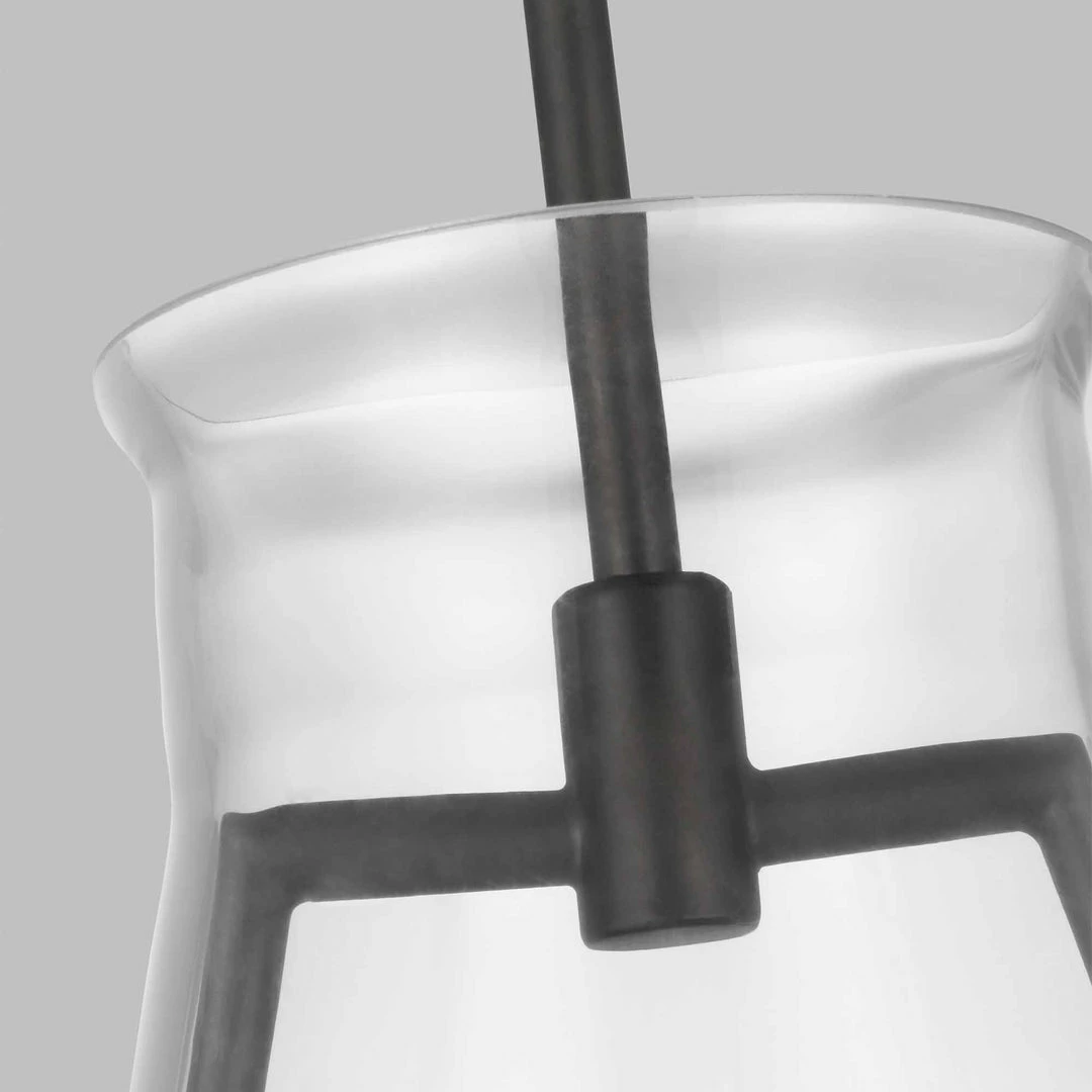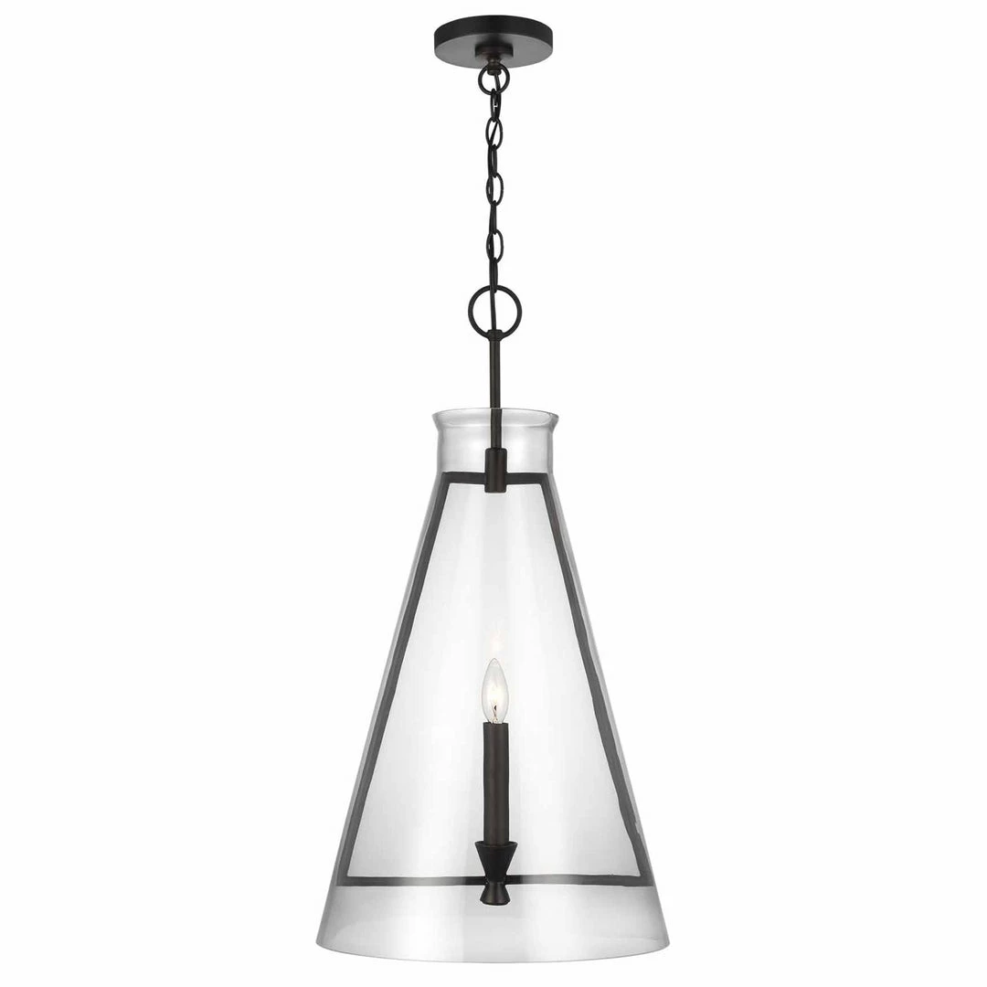 The Keystone Pendant casts a warm and inviting glow, in any room it’s placed. An exposed candelabra is surrounded by Clear glass and pairs perfectly with the angular, Aged Iron frame. Available in two sizes. 5.5-inch diameter canopy. Damp location rated.