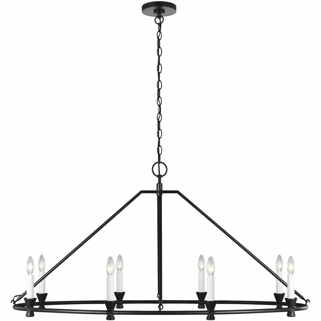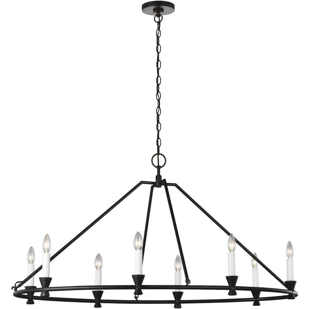 The Keystone Oval Chandelier casts a warm and inviting glow, in any room it’s placed. Exposed candelabras pair perfectly with the angular, Aged Iron frame. 5.5-inch diameter canopy. Damp location rated. UL listed.