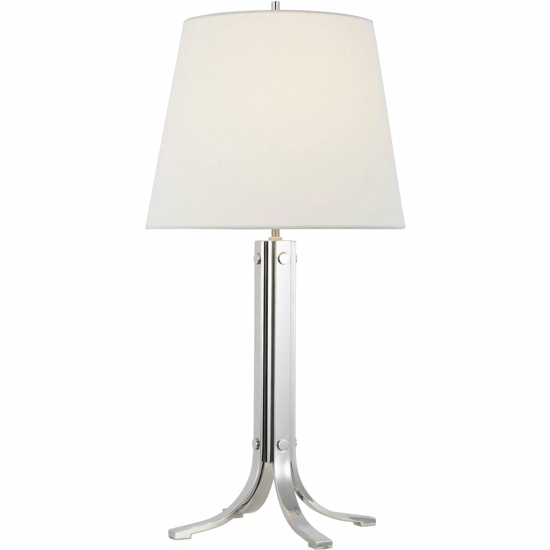 The Logan Table Lamp offers a chic, contemporary look that will tie effortlessly into a number of interior spaces. The slim curved legs of the body are available in Aged Iron or Polished Nickel and topped with a cone shaped White Linen shade. On/Off switch is located on the lamp socket. UL and cUL listed.