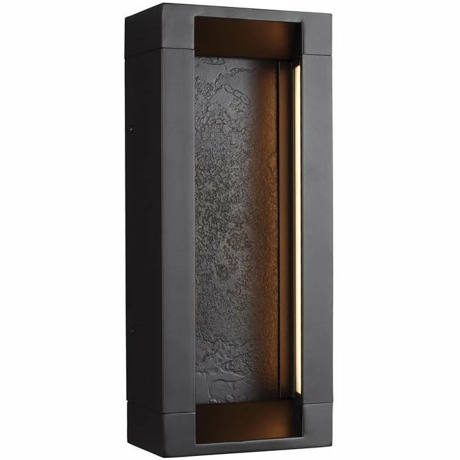 The Mattix outdoor lighting collection combines exemplary engineering and beautiful modern design. Vertically recessed LED light softly grazes across recessed inserts, unique with rich texture. The oil rubbed bronze finish of the sleek outer frame is paired with a metal insert specially treated to create a heavily textured, organic pattern. The painted silver finish complements a clear glass insert deeply carved, vertically, to suggest a waterfall. While rated for outdoor lighting use, Mattix wall sconces can also be used for indoor applications where soft accent lighting is preferred. The line includes three, varying sizes of outdoor lighting wall sconces.