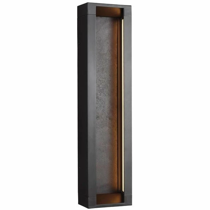The Mattix outdoor lighting collection combines exemplary engineering and beautiful modern design into wall sconces unlike any others. Vertically recessed LED light softly grazes across recessed inserts, unique with rich texture. The oil rubbed bronze finish of the sleek outer frame is paired with a metal insert specially treated to create a heavily textured, organic pattern. The painted silver finish complements a clear glass insert deeply carved, vertically, to suggest a waterfall. While rated for outdoor lighting use, Mattix wall sconces can also be used for indoor applications where soft lighting is preferred. The line includes three, varying sizes of outdoor lighting wall sconces. ADA compliant.
