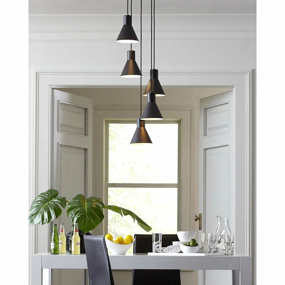 The Towner lighting collection brings mid-century, retro style to the traditional circular silhouette, creating a bold statement that would accent any space in your home. The conical light shades deliver a fun design statement along with the textured cloth cords, which are adjustable for leveling. These fixtures are ideal for dining room lighting and kitchen lighting.