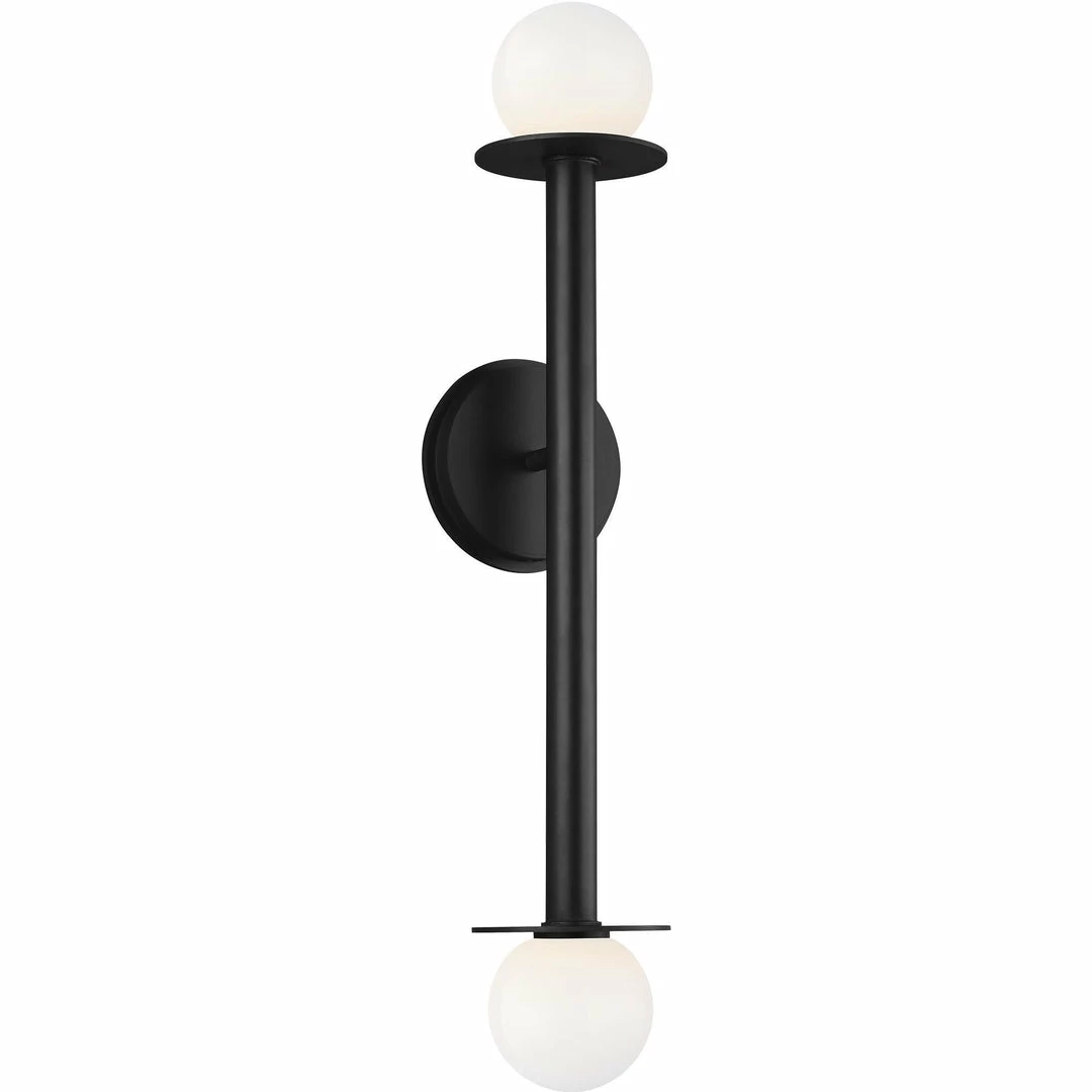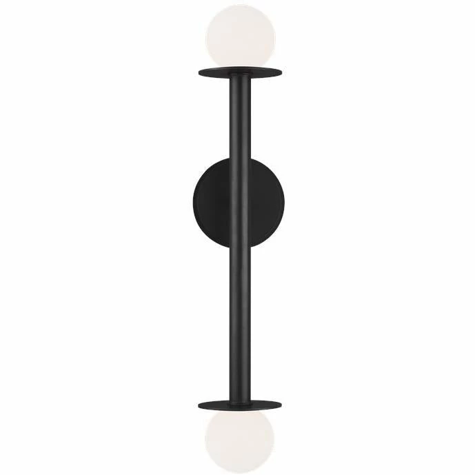 Nodes task, ceiling and wall lighting is minimal yet bold, highlighting Kelly’s distinctive juxtaposition of mixed-materiality and curvilinear form. Light radiates from milk glass globes set against metal discs. All fixtures can be used with or without the discs. The cast canopy is available in Burnished Brass or Midnight Black. Hanging fixtures within this family feature black fabric cords, while pivot sconces can be cord and plug or hard wire.Â