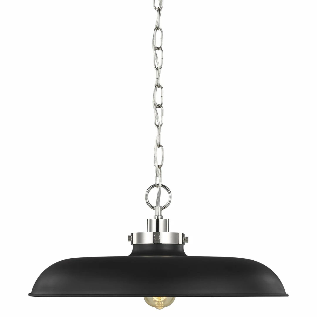 The Wellfleet Pendant combines a raw industrial edge with soft curves and subtle details in order to create a wonderful luminaire. The saucer shade, finished in Midnight Black or Matte White, gently casts light down while contrasting details of Polished Nickel complete the Wellfleet’s look. Place this pendant over the kitchen island to add warmth and class to your space. Available in two sizes. Damp location rated.