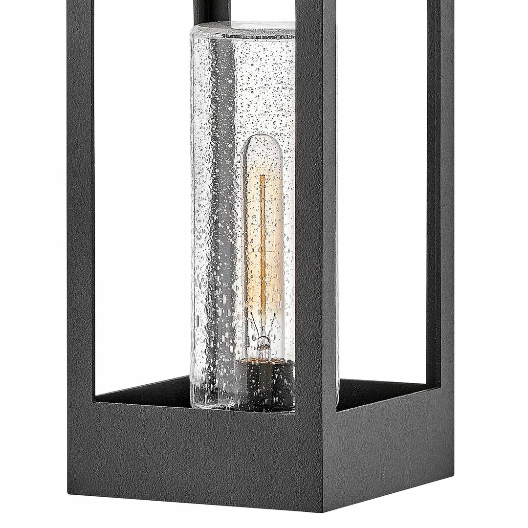 Amina is tradition with a flair. This lantern-inspired wall mount features dramatic, arched windows revealing a seedy glass that creates a faux candle effect. Constructed of durable aluminum in a Distressed Zinc finish, Amina is complete with an oversized loop reinforcing its timeless appeal.