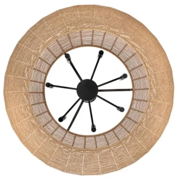 Luca’s coastal vibe is permeated with a slightly exotic edge. The bold pendant showcases a robust, woven drum shade, and a full finished cluster for plenty of functional light.