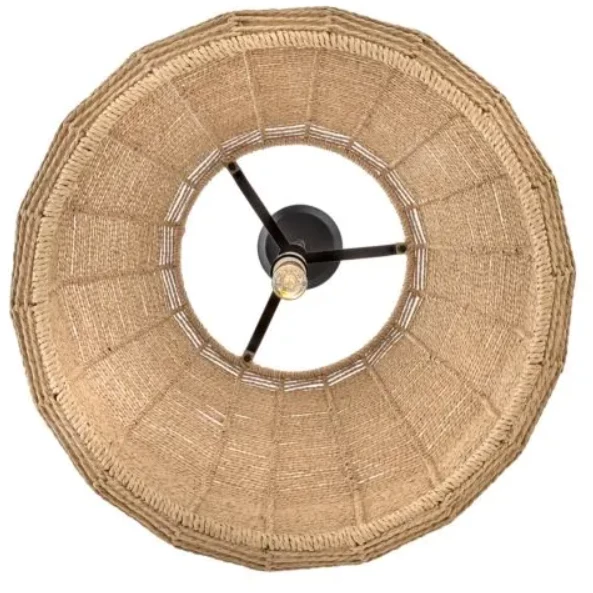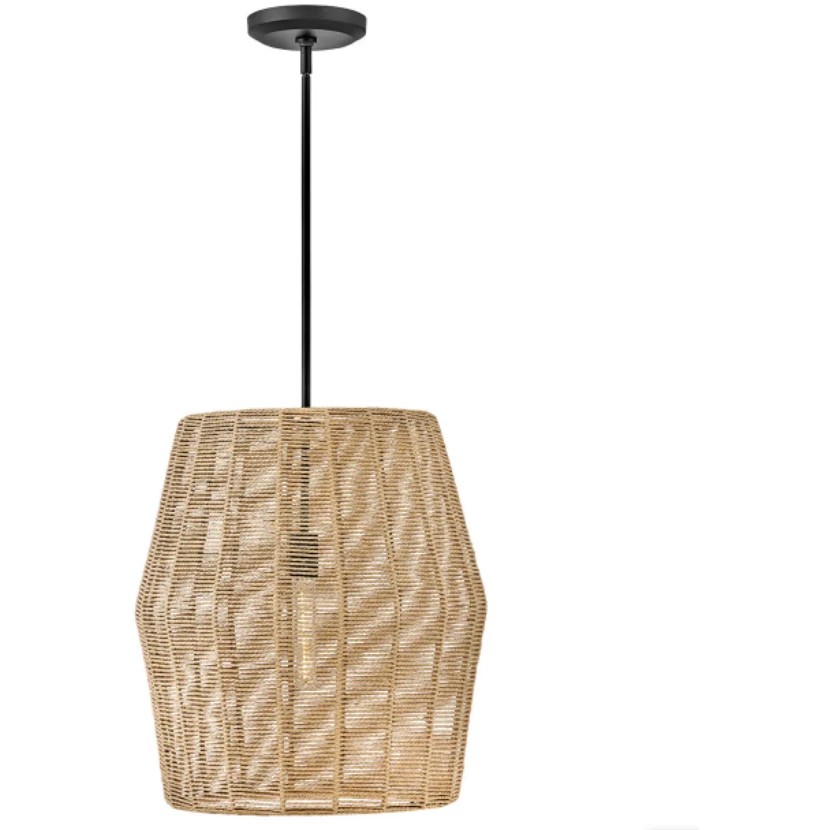 Luca’s coastal vibe is permeated with a slightly exotic edge. The bold pendant showcases a robust, woven drum shade, and a full finished cluster for plenty of functional light.