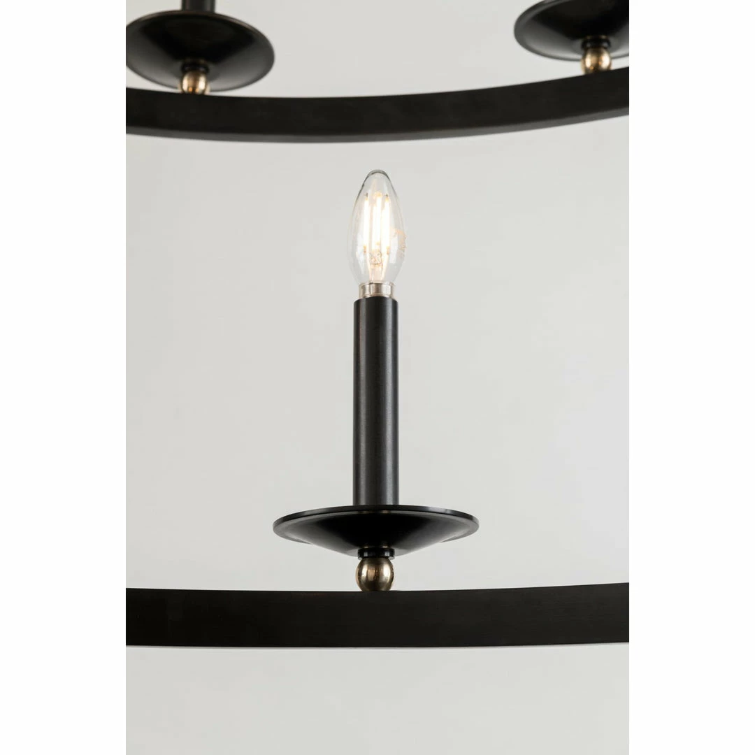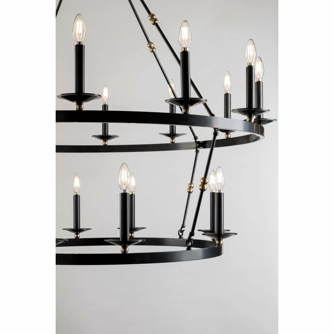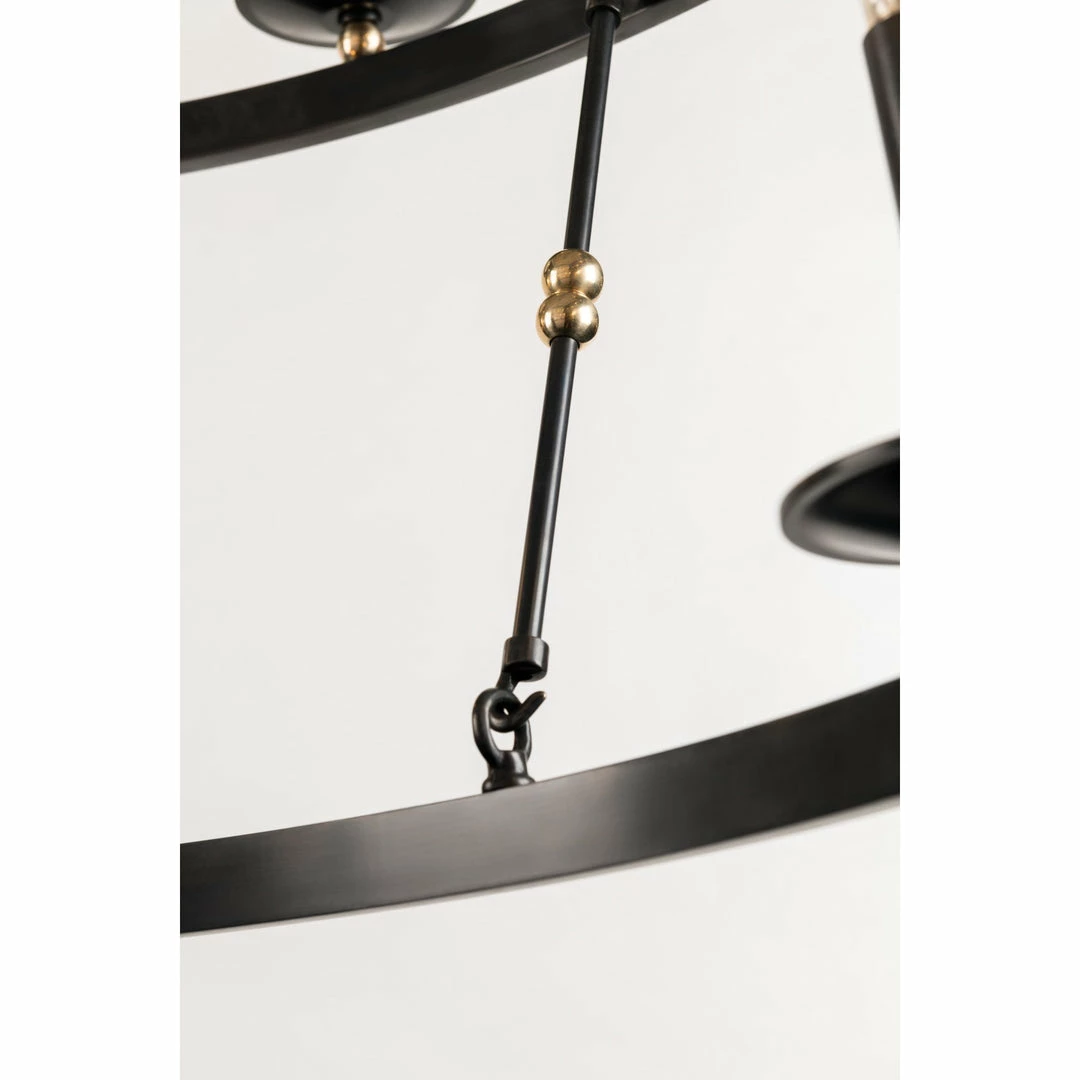 Streamlining a wagon-wheel chandelier with hook-and-hoop rods, Allendale breathes new life into a classic. Available in one-to-three-tier and rectangle versions, its sphere details and vastly different finishes refine the rustic.