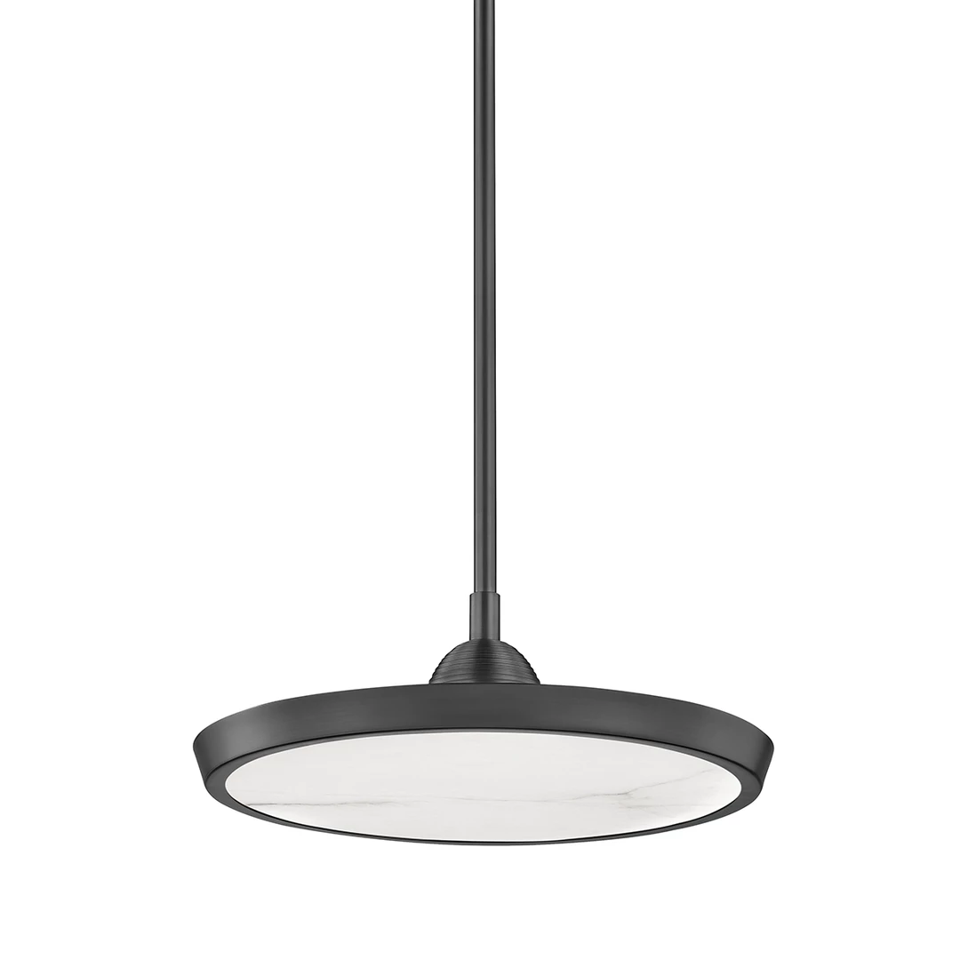 Striking in its simplicity, Draper is a sleek modern design that makes its presence known. Light-emitting diodes (LEDs) placed within the rim of the alabaster diffuser create a stunning glowing disc of stone effect. Available as a flush mount and in two pendant sizes in Aged Brass, Old Bronze and Polished Nickel.