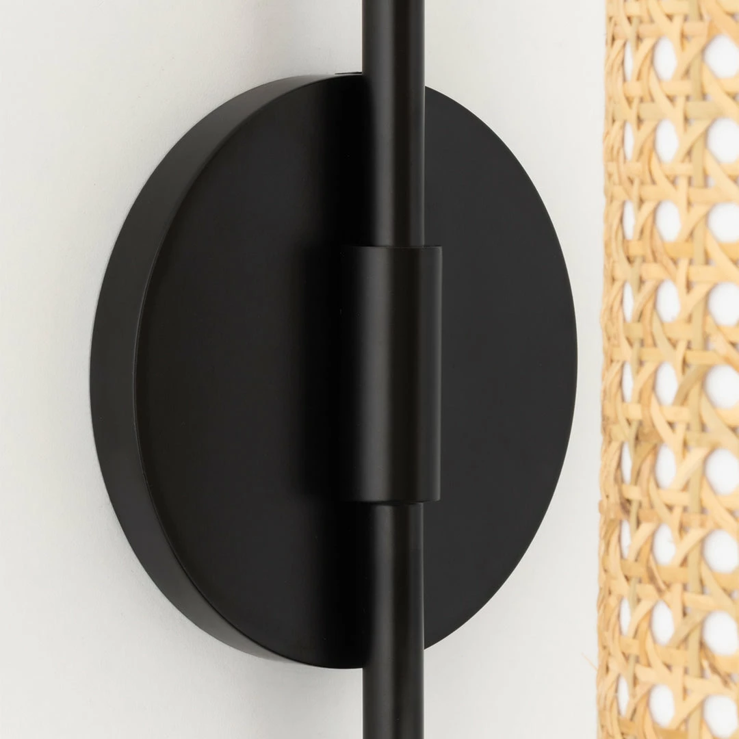 A bohemian darling, Dolores is brimming with theatrical flair. Dolores pays homage to the cane mania of the 70s, reinvented for today. Natural cane is woven intricately around a white cotton shade, contrasted with a soft black finish. The flush mount and pendant versions feature a decorative tassel for good measure.