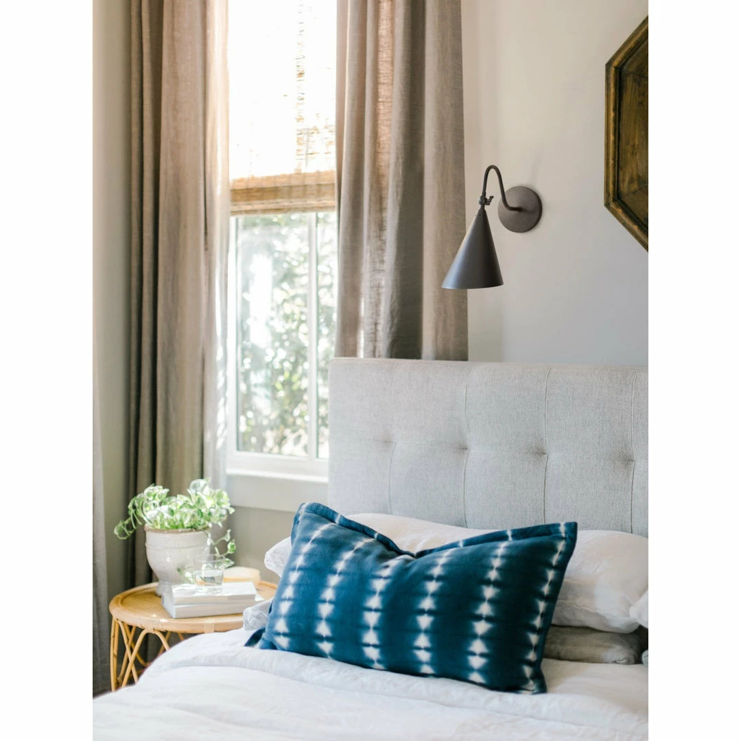 Lupe is a seamless hybrid of industrial, midcentury-modern, and traditional influences. A perforated shade has the couture look of a bias-cut, like a spotlight hitting the stage. Its bowtie swivel key is as functional as it is stylish.