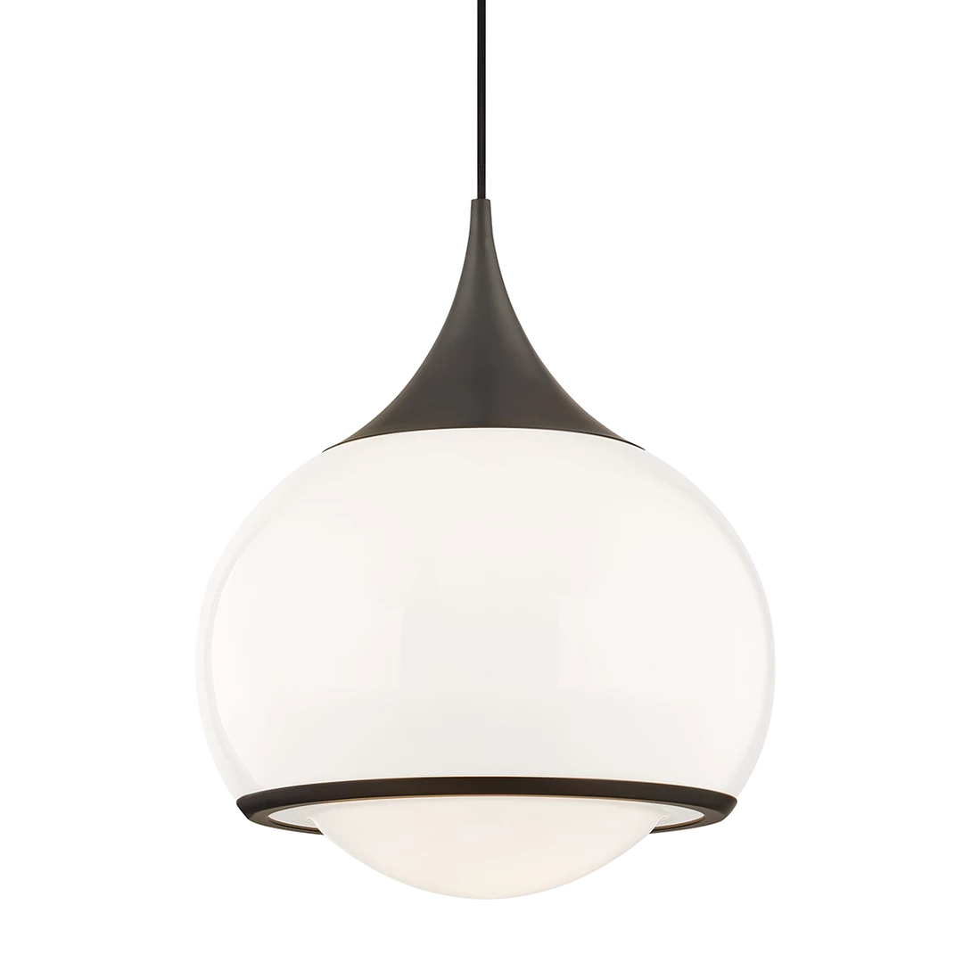 With a shade encompassing another shade within it, Reese spins a glossy beauty. The metal rim on the outer shade and the peeking-out inner shade are a couple details contributing to its elegance.