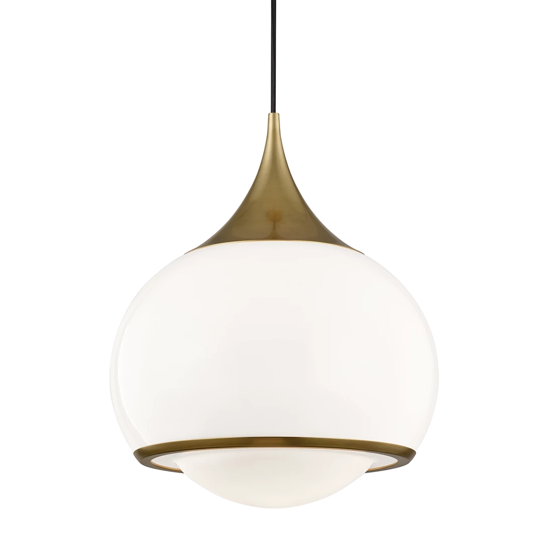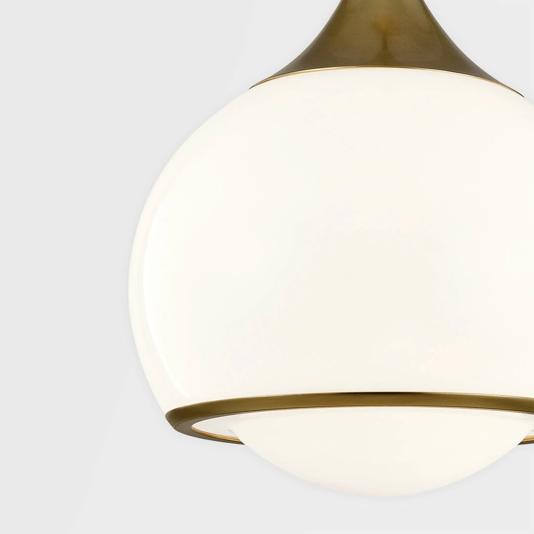 With a shade encompassing another shade within it, Reese spins a glossy beauty. The metal rim on the outer shade and the peeking-out inner shade are a couple details contributing to its elegance.