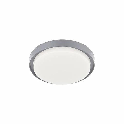 Circular cast aluminum body and frame. Lightly textured powder-coat finish. Round opal polymeric diffuser. Outward emitting light. Rated for exterior use. Available in three sizes and two colour options – black and grey. Custom options available.