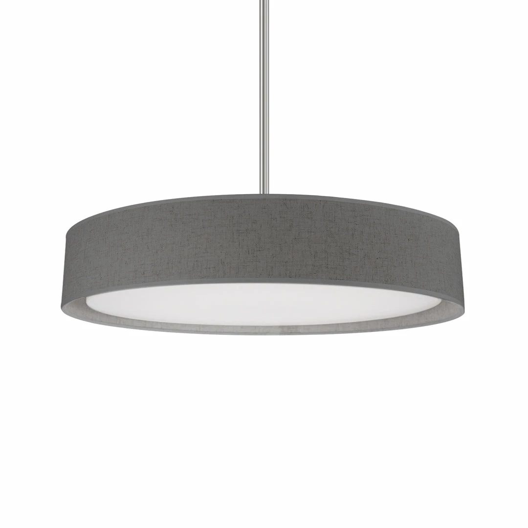 A textured linen band surrounds a concentric polymeric diffuser spreading even light from the LED source. Finely hand-tailored, the fabric shade contributes a soft sophistication to the modern interior. Applicable as a flush mount, pendant and in numerous sizes and fabric colors to suit your context.