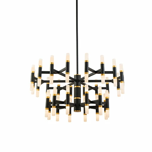 Overlapping aluminum arms form meshwork. Finely textured powder-coat finish. Tapered round translucent diffusers. Plated gold brushed accent rings. Up and down light. Custom options available.