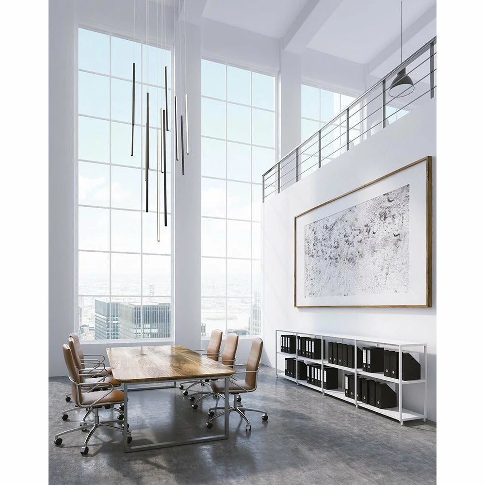 Eight extruded circular aluminum vertical lamp rods. Flexible silicon rubber diffusers. Lightly textured powder-coat colors. Outward emitting light. Custom options available.