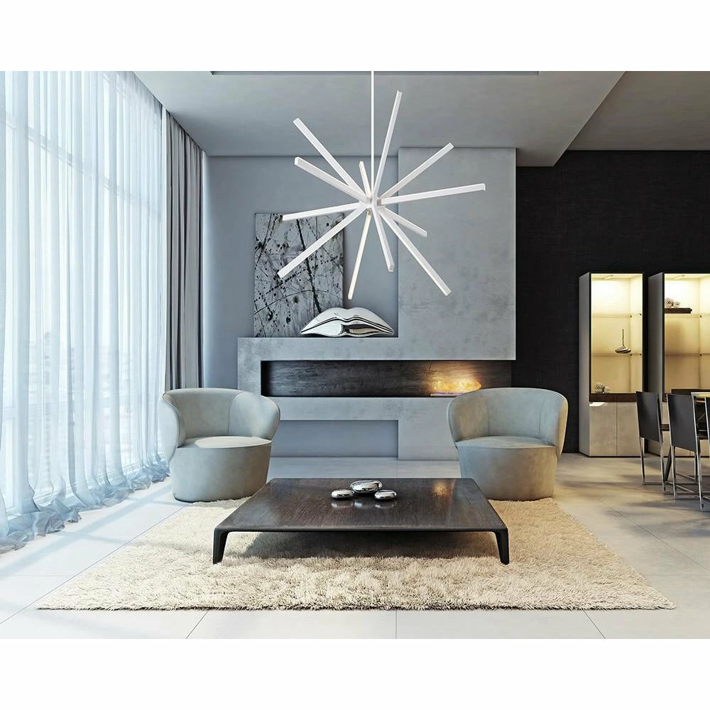 Sirius’ array of elements emanate from a single point in a starburst of light. A visual statement that draws the eye as the burnished finish interplays with the light, revealing shifting highlights and shadows. Contemporary and decorative. Available 2 sizes and 4 finishes: Brushed Nickel, Black, Gold and White.
