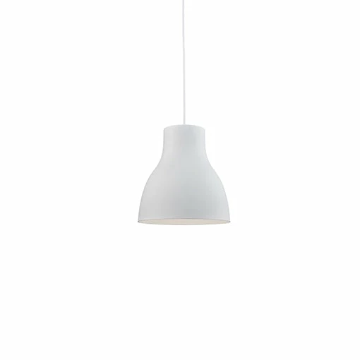 Single lamp pendant with tapered aluminum shade showcasing powder-coated finishes. Exterior shade colors are either black, gray or white with matte white interior. Suspended by cloth cable to a maximum 120″ length. Available in 3 sizes.