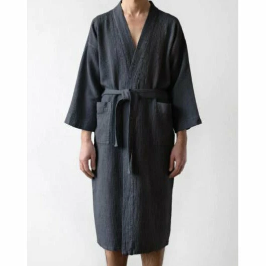 This dark grey linen bathrobe is a unisex piece in our bath linen collection. It is extremely cozy and soft. We are sure that it will become an irreplaceable part of your morning and evening bath routine