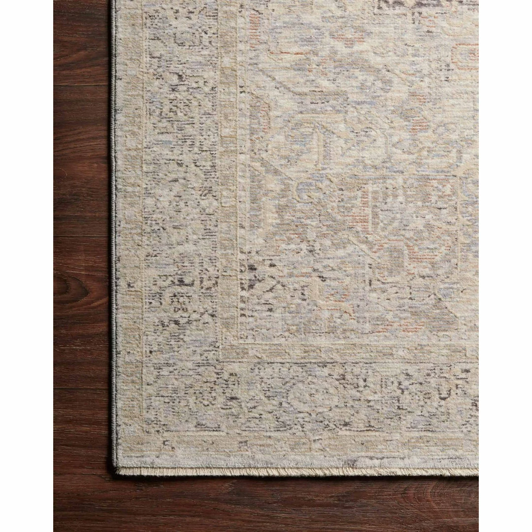Power-loomed of polyester and viscose in Turkey, the Faye Collection displays a soft color palette and a mix of distressed and traditional-inspired motifs.