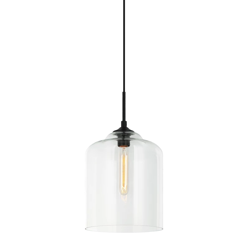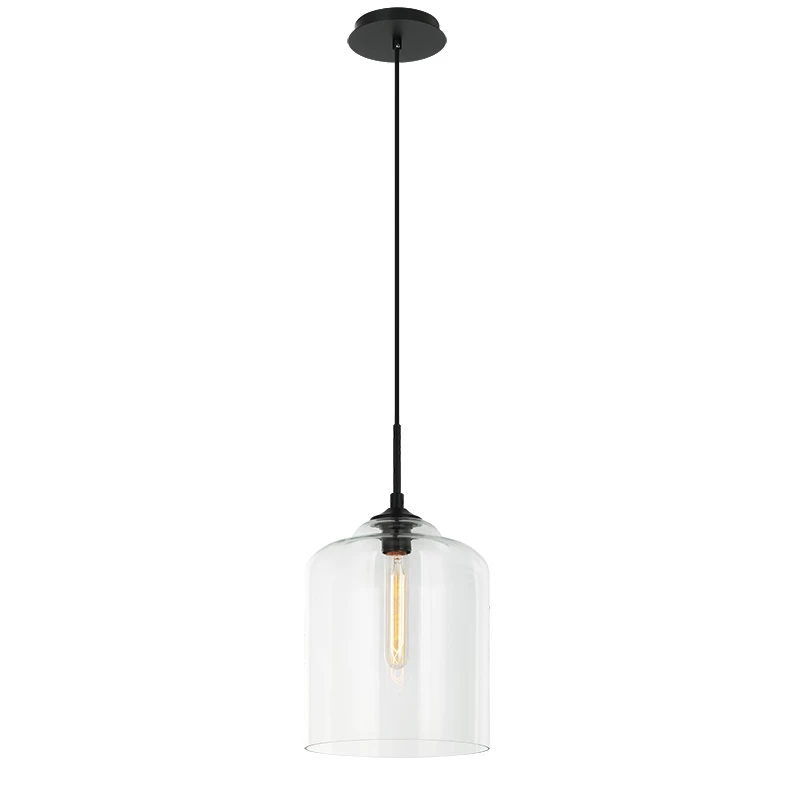 Clean, simple hand-blown glass will redefine any space. Single black canopy with black cord included.