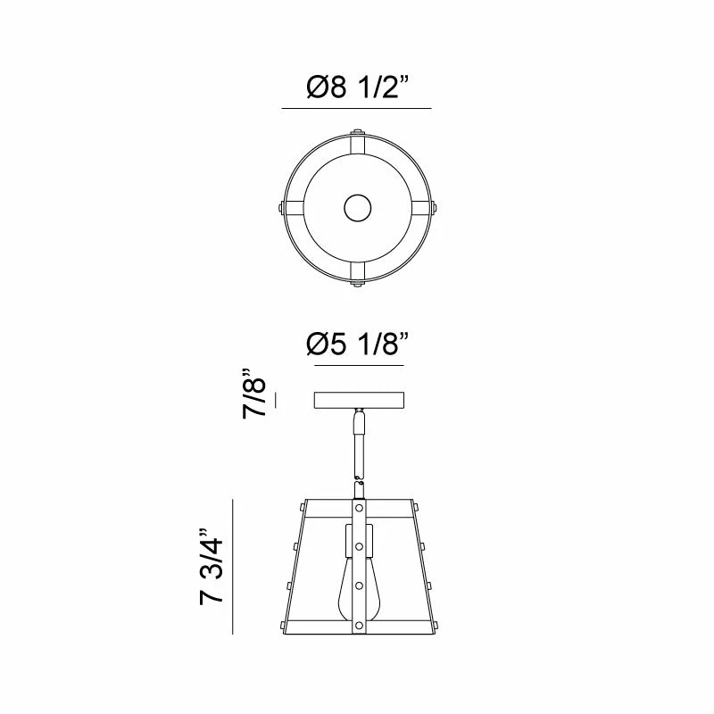 - Dimensions: Ø8 1/2″ x 7 3/4″H