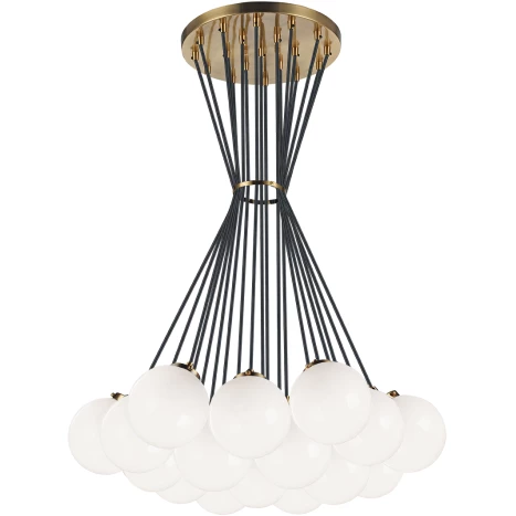 This series comes in several different models depending on the number of light bulbs. The light is designed with a candelabra based bulb covered in spherical glass with a choice of Aged Gold Brass or a Chrome finish. Both finishes are completed with a black cord. You can hang these fixtures with different lengths of cord depending on the look you are going for. The ring that keeps the cords tight can also be removed, if so desired.