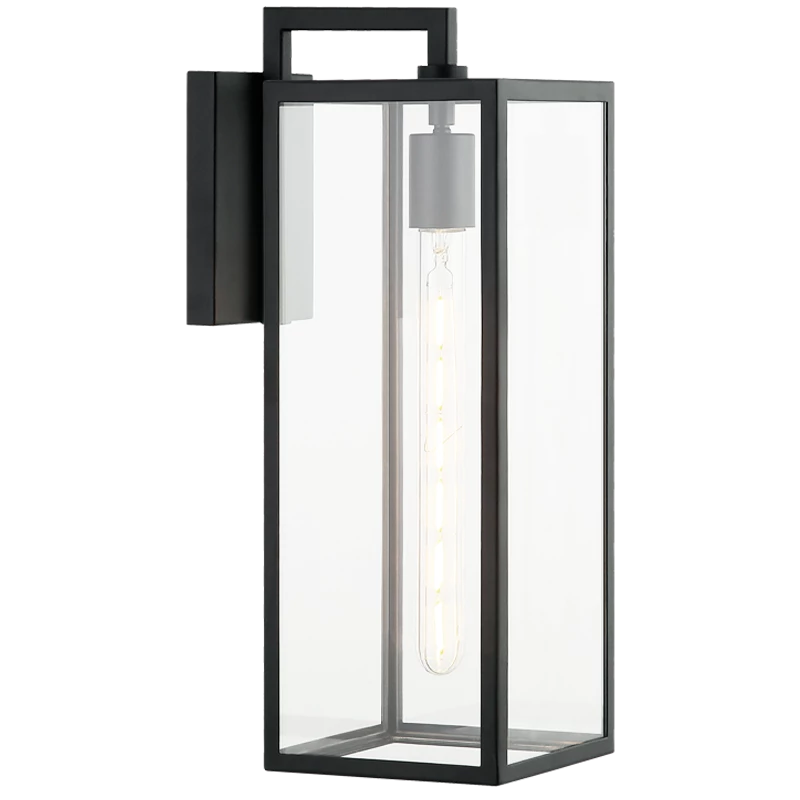 A classic outdoor wall sconce series with a minimalist look. Clean rectangular design with metal framework and clear glass. Camber is a series that will never go out of style. Available in 2 sizes.