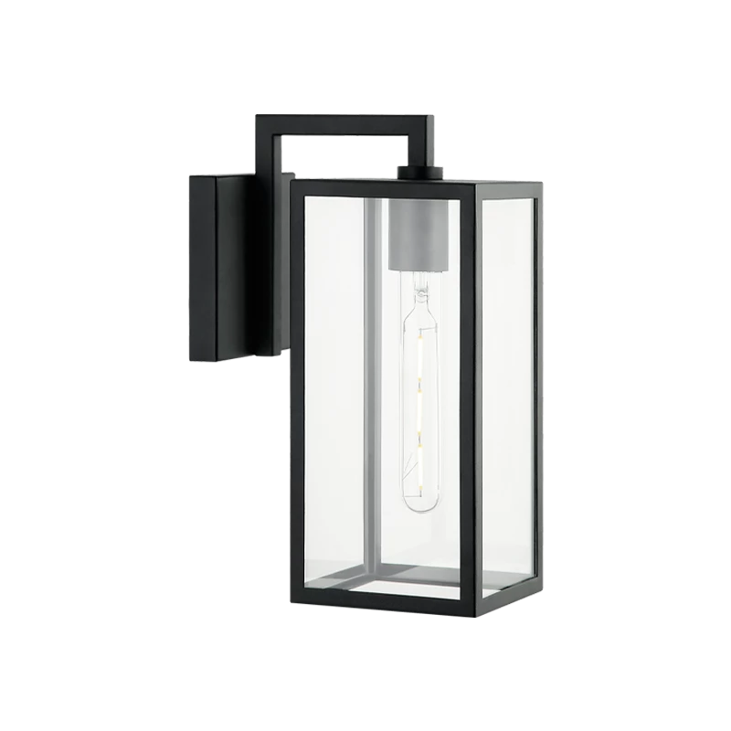 A classic outdoor wall sconce series with a minimalist look. Clean rectangular design with metal framework and clear glass. Camber is a series that will never go out of style. Available in 2 sizes.