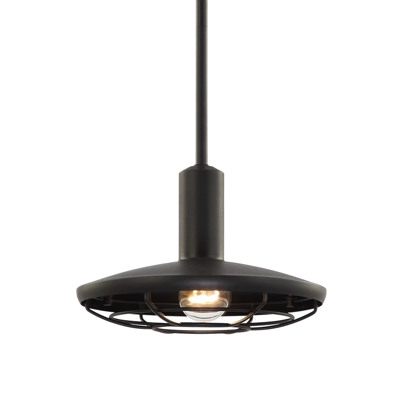 Compton is an outdoor collection available in Matte Black finish.This collection features caged detailing to provide a modern twist on a farmhouse style light.The collection comes in 2 pendants and a wall sconce option.