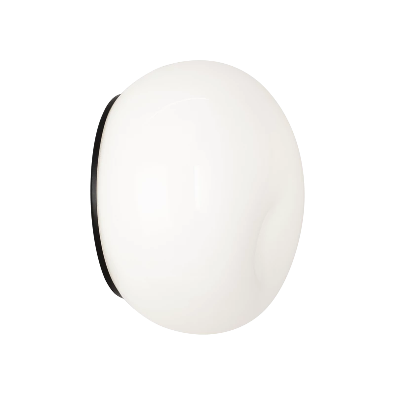 A contemporary wall sconce and flush mount series. Gelasin features a thin canopy attached to a hand blown Opal glass with a unique dent which adds to the aesthetics. Available in 2 sizes and 2 finishes.