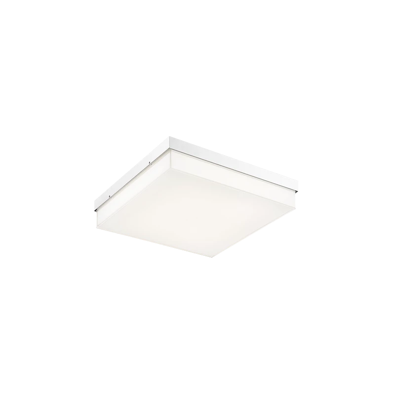 Sleek square and rectangular shape is the signature of this product. The clean lines represent simplicity at its best. The base comes in Chrome or Oxidized Black paired with a painted white glass shade. Available in both a LED wall sconce and flush mount.